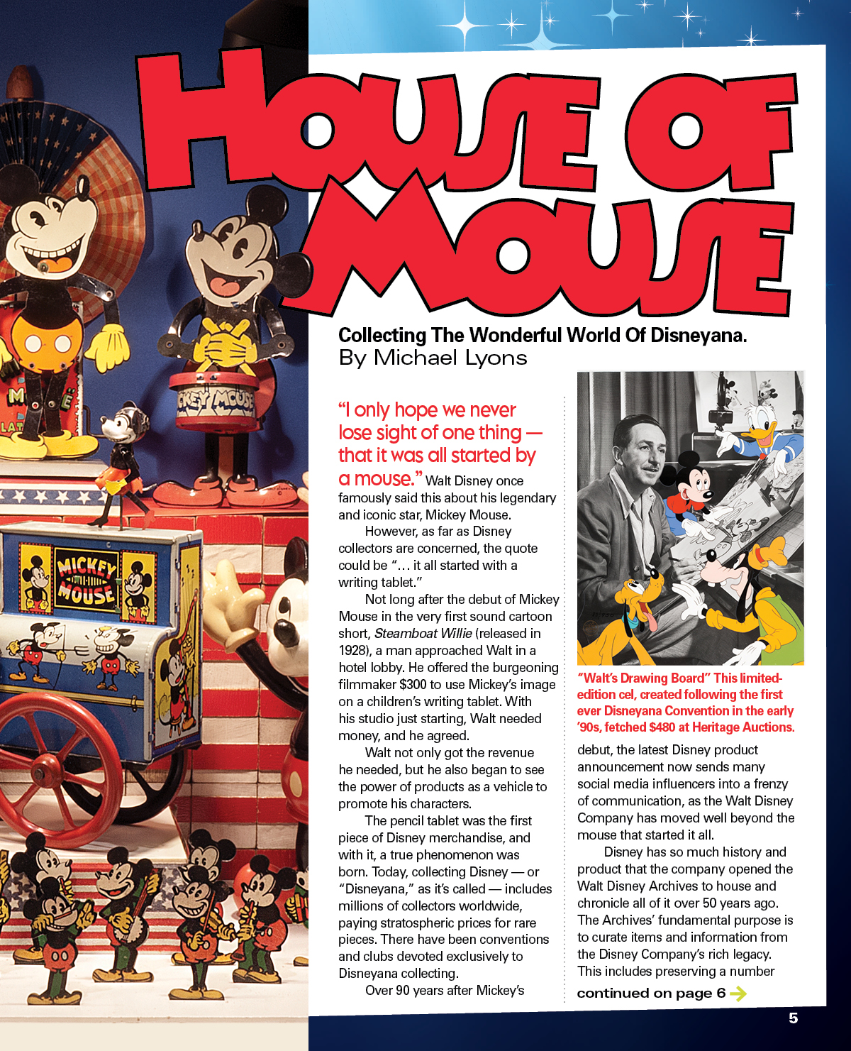 In our annual collecting issue, we turn our attention to the magical world of Disney collectibles. Whether you’re a dedicated collector of Disneyana or are looking for a way to get started, we hope you will enjoy the magic realm about to unfold.